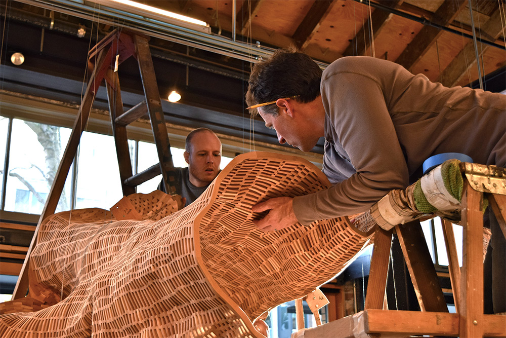 В создании последней скульптурной композиции художника Джона Грейда (John Grade) принимали участие многие добровольцы. Процесс начался ещё год назад. Грейд и команда помощников сделали гипсовые слепки с 140-летнего 27-метрового дерева в Норт-Бенде, штат Вашингтон. Бережно снятые формы тсуги транспортировали в студию в течение двух недель. А следующие 12 месяцев сотни добровольцев помогали собрать полую скульптуру дерева, используя сотни тысяч мелких древесных блоков. Заключительная часть состояла в тщательной шлифовке инсталляции, которая выставлена в галерее Сиэтла, штат Вашингтон, США.